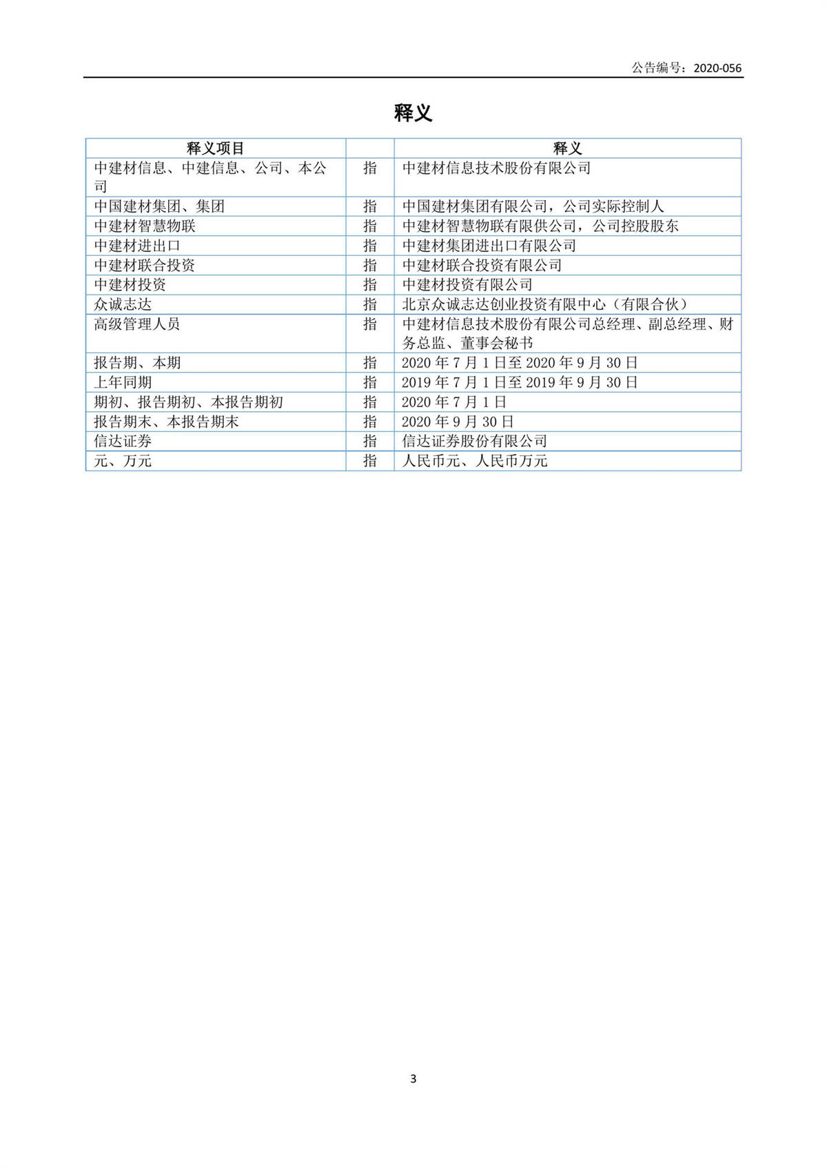 中建信息2020年第三季度報告
